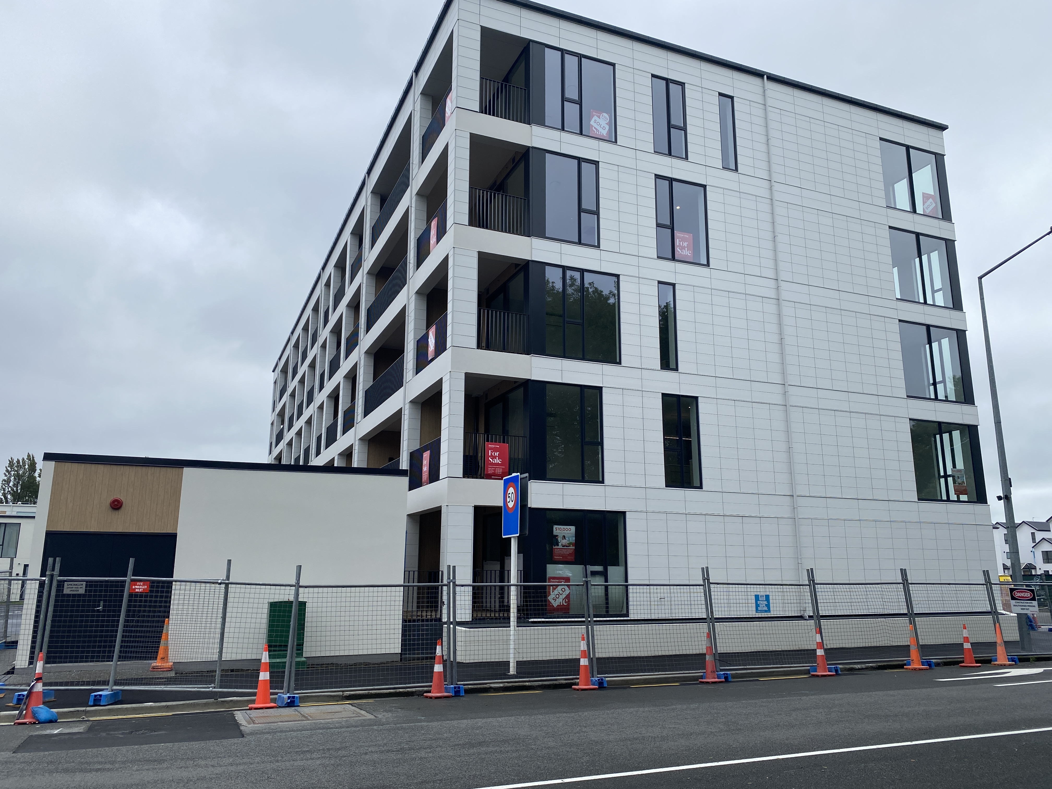 Dyer Street Townhouses, Lower Hutt – Colorsteel Custom Orb Endura Flaxpod and Gull Grey Roof and Wall Cladding